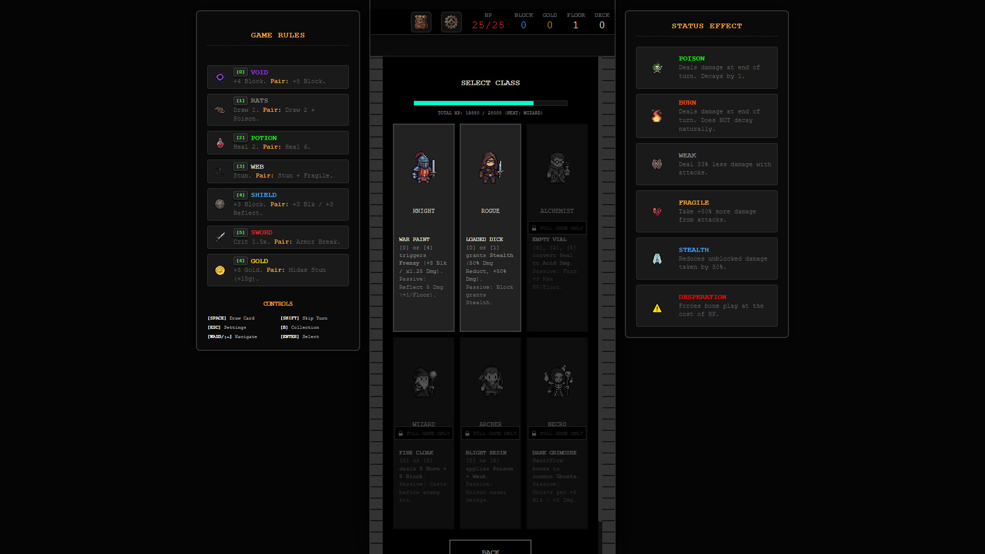 • Multiple Classes: Start as the Knight or unlock the Rogue, Alchemist, Wizard, Archer, and Necromancer. Each brings unique starting relics and a completely different playstyle.