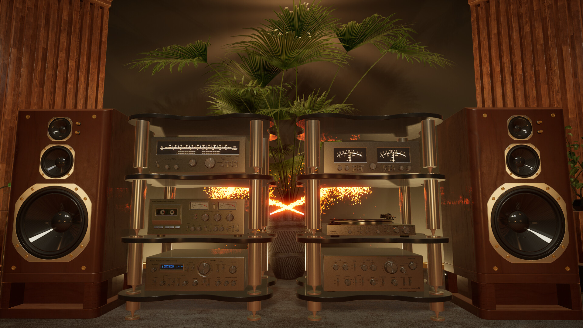 Aurenv uses the audio signal that is going through the Default Playback Device of your Windows to animate various elements within 3D environments such as speaker drivers, vu meters, lights and more.