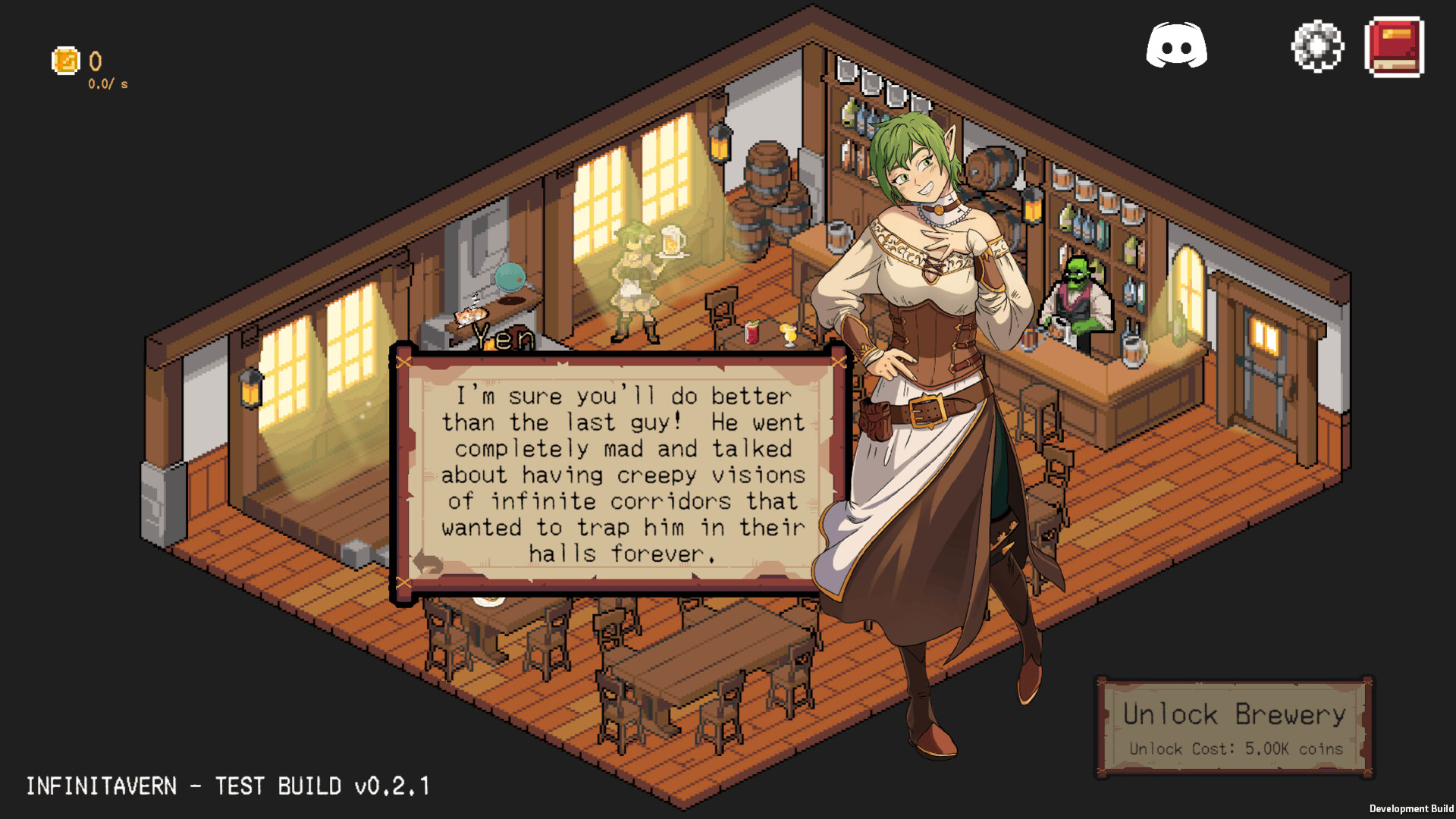 Designed as a relaxing incremental experience, INFINITAVERN is about steady growth, relaxing gameplay, and watching your tavern evolve into a self-sustaining powerhouse.
