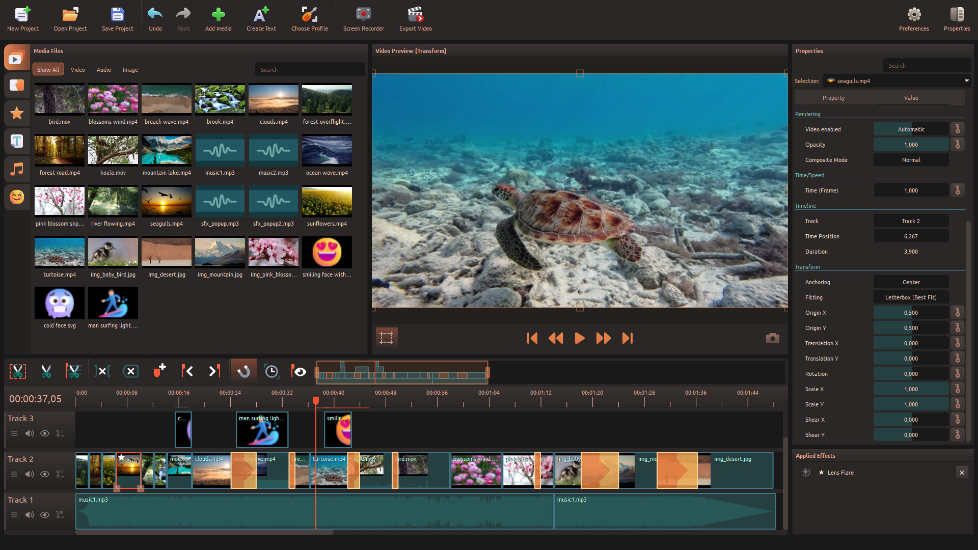 Enhance your videos in no time with the built-in media library, which offers music tracks, emojis, icons, and visual elements.