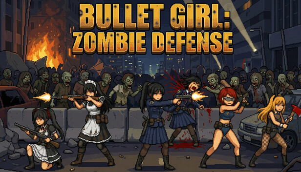 Command a squad of five girls to defend against zombie hordes across ruined cities, forests, deserts, and labs! Deploy melee and ranged units, manage energy, and find the best tactics to hold the line. Features 4 stages, Endless Mode, and unlockable CG illustrations. A pixel-art tower defense game!