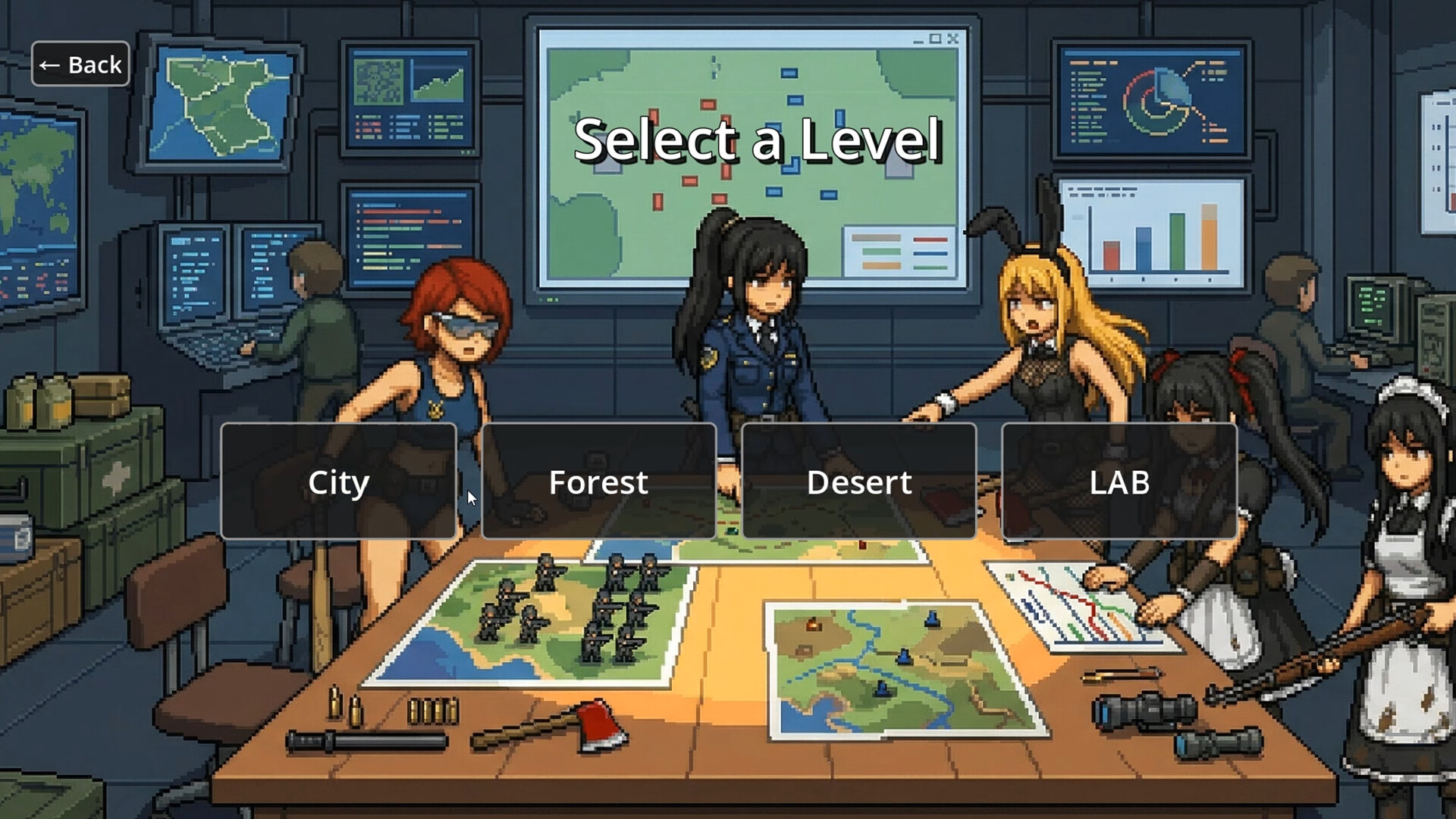 Bullet Girl: Zombie Defense is a pixel-art tower defense game. Command a squad of five girls across multiple battlefields — ruined cities, forests, deserts, and laboratories — to fend off endless waves of zombies.