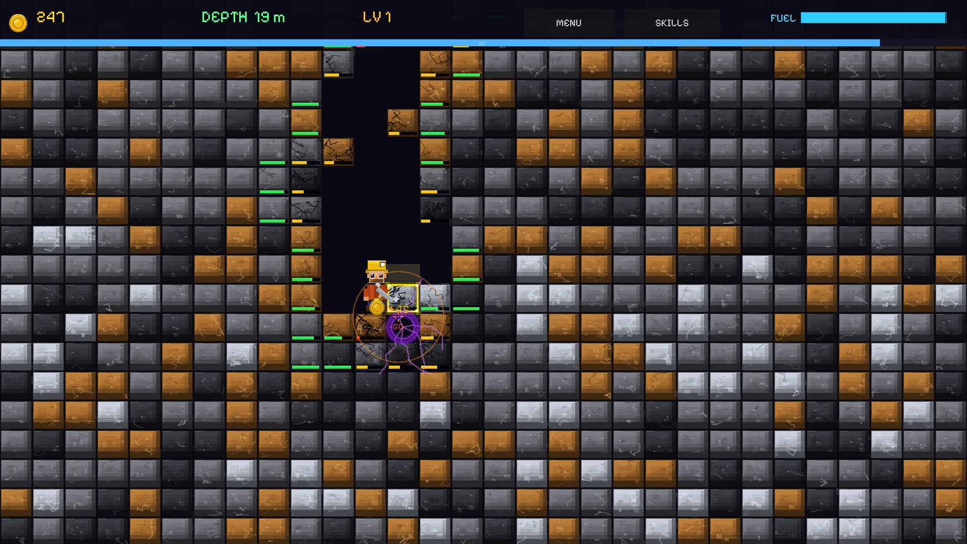 Empiezas con un pico. Tu objetivo es el núcleo de la Tierra. No será fácil. Excava más profundo, mejora tu equipo, desbloquea nuevas tecnologías — y sigue adelante. Cada capa es más difícil, cada mineral más raro, cada secreto más grande. ¿Qué tan profundo puedes llegar?