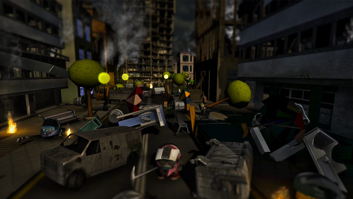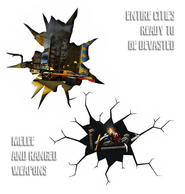 On one side you will control the leader of the revolt in third person view . So, you have to find a melee weapon to smash things and enemies. You can pick up and throw urban props.