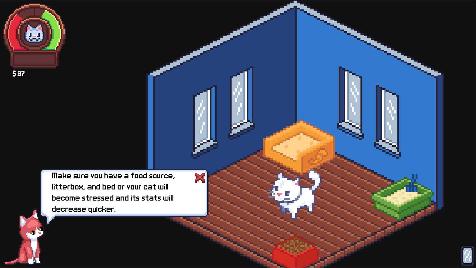 A cozy cat companion game where you decorate a charming room, care for your cat’s needs, and enjoy a tiny relaxing world that lives beside you.