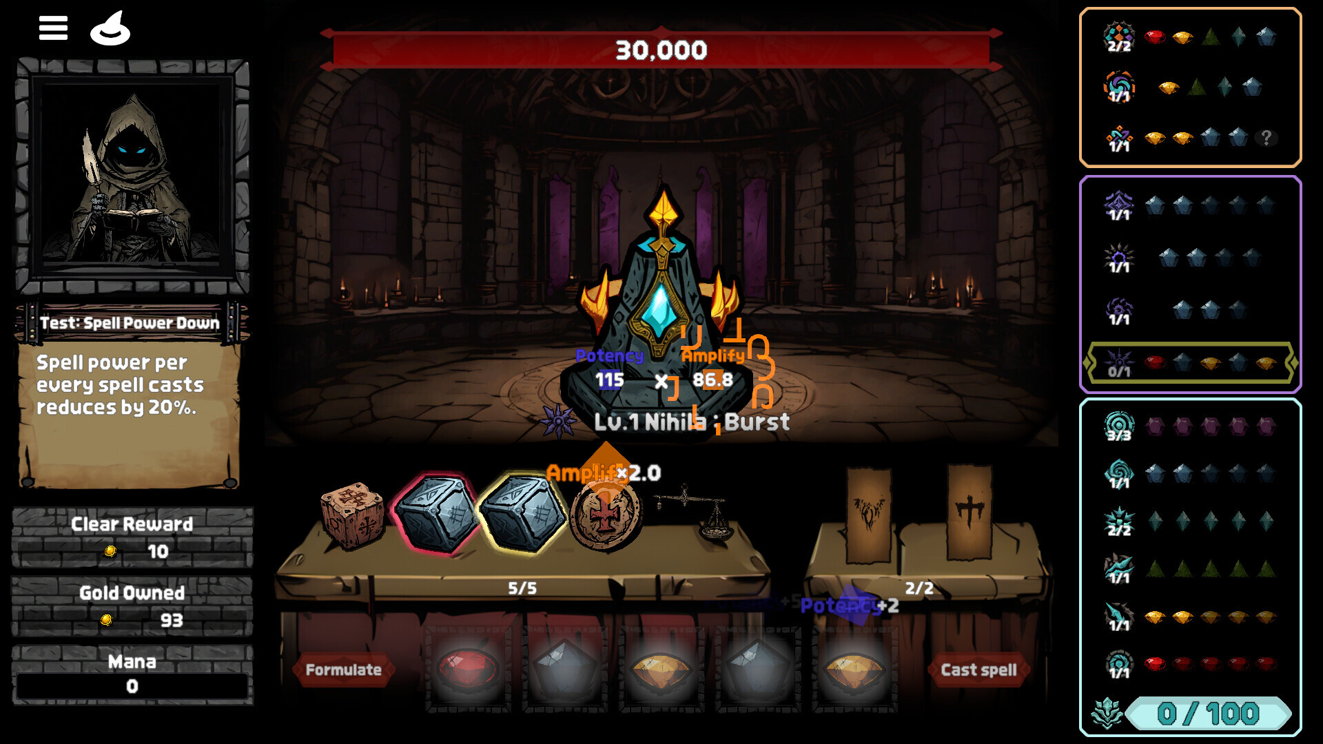 성물간의 시너지를 통해 스테이지가 지날수록 눈덩이처럼 불어나는 강력한 마법의 조합이 만들어집니다.