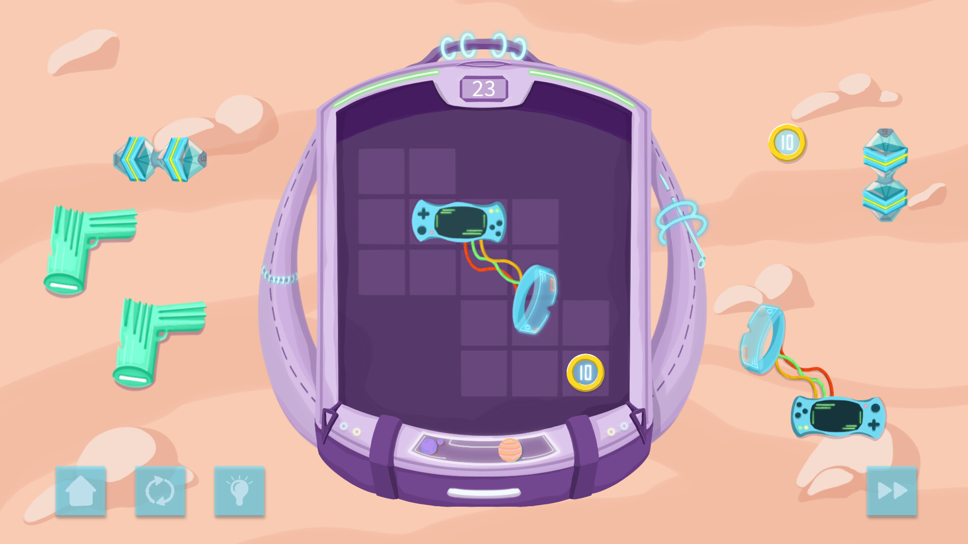 Find items from the unknown planets and take them in your tidy backpack to find out what they are for in the faraway lands. However, we can only guess what all these artifacts serve for...