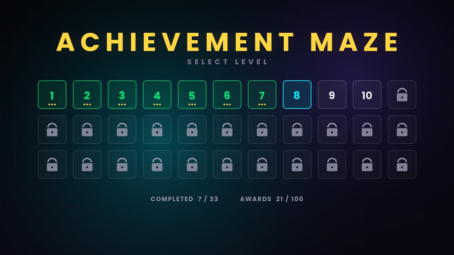 • 100 unlockable achievements — 3 per maze plus a final one for completing them all