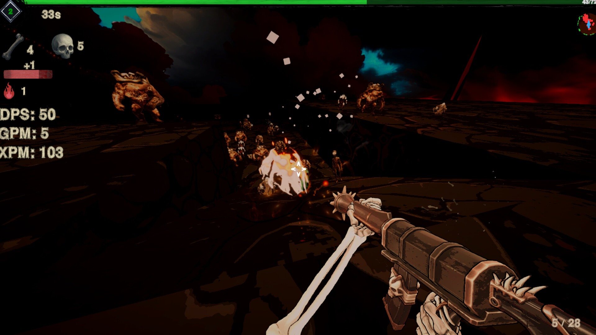 A first-person bullet heaven survival shooter set in a relentless Hellscape where overwhelming enemy hordes never stop coming. You are dropped into arenas filled with demonic forces and must fight to survive as the intensity escalates over time.