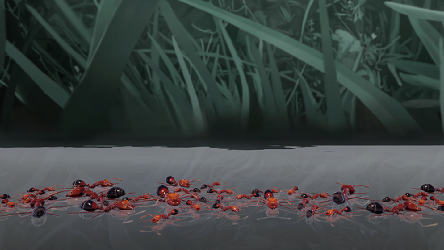 Hundreds of warriors clash in a melee of gnashing mandibles as formic acid artillery fires overhead. Nightfall has come and the last of the workers are rushing back underground, dodging beetles to deliver food to the nest. The stockpile is empty, and without more, reinforcements will not hatch for the ongoing war between the duelling Empires of the Undergrowth.