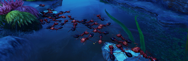• Your enemies are equally varied – apart from other ant colonies, you’ll engage in combat against arachnids, amphibians, crustaceans, and a wide variety of insect species. These powerful and often (comparatively) gigantic creatures present a unique threat to an unprepared colony, and only superior tactics can overcome them. An envelopment manoeuvre can circumvent the adult devil’s coach horse beetle's stunning spray, while tactically isolating and overwhelming hermit crabs one by one will bring their demise faster than they can hunker down to heal.