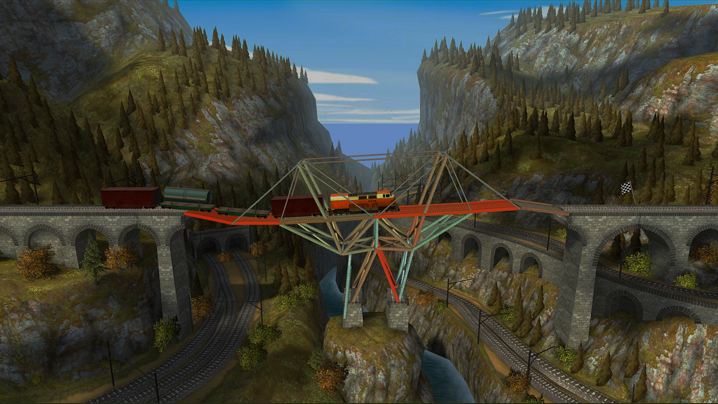 The "Trains" DLC let's you visit the "Choonited Kingdom" island group, with a total of 18 new levels across three islands. Build massive bridges that can withstand the enormous weight of the two new vehicles on offer - a commuter train and a heavily loaded freight train. The idyllic and beautifully designed landscapes will make the heart of every railroad fanatic skip a beat.