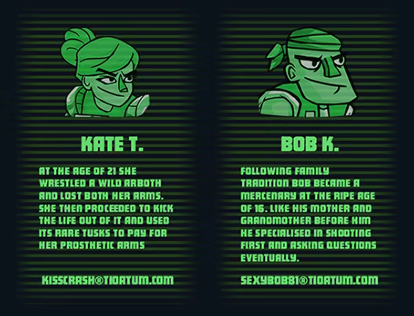 HOLO CORP – a ubiquitous corporate behemoth that (obviously) values profit over ethics. That's why they aren't shy about sending mercenaries to explore and preemptively attack alien worlds in order to obtain precious artifacts and DNA samples for their research. The Greedy Guns team is happy to work for HOLO CORP – as long as they pay well. And do they ever! Too bad HOLO CORP also sells them their guns.