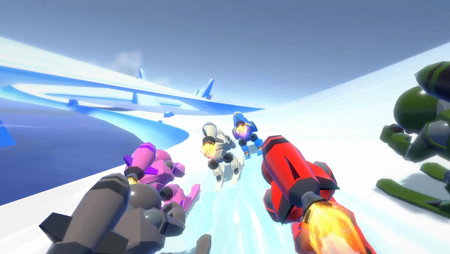 Bump and bash 9 other rocket ski racers to stay on the track fast line and finish 1st! Races are either 3 or 5 laps.