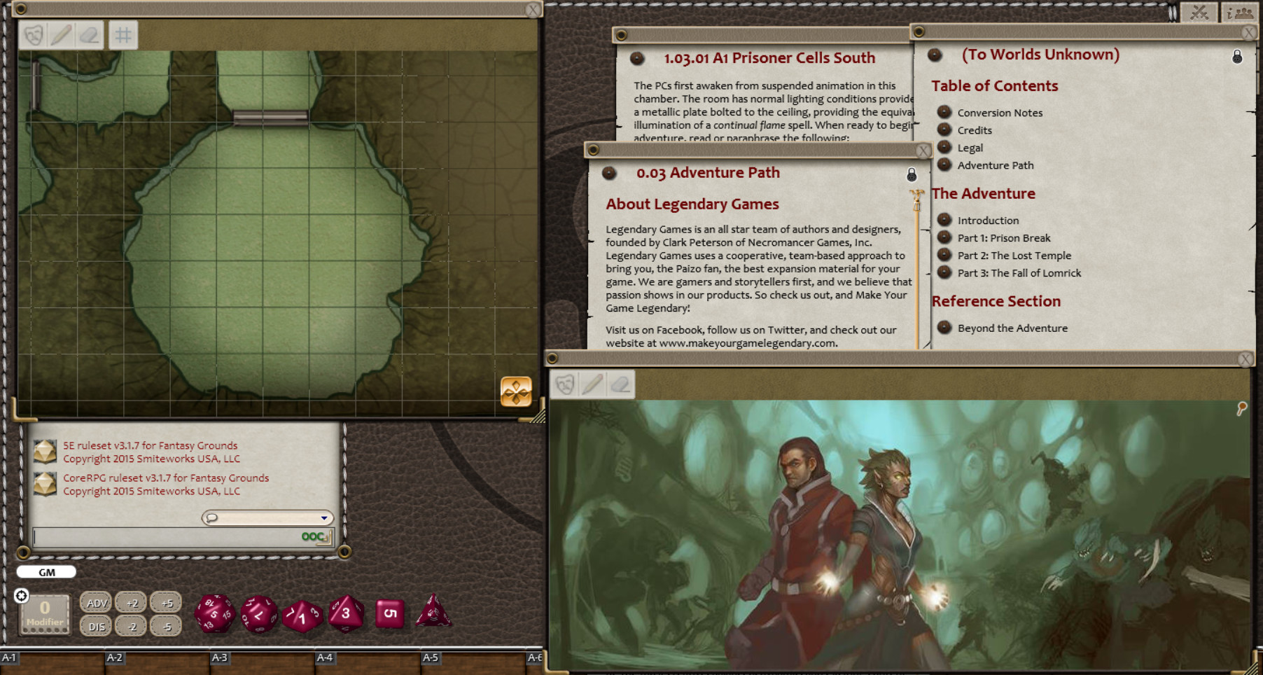 Requires: The free Fantasy Grounds virtual tabletop (VTT) software and the included 5E Compatible ruleset.