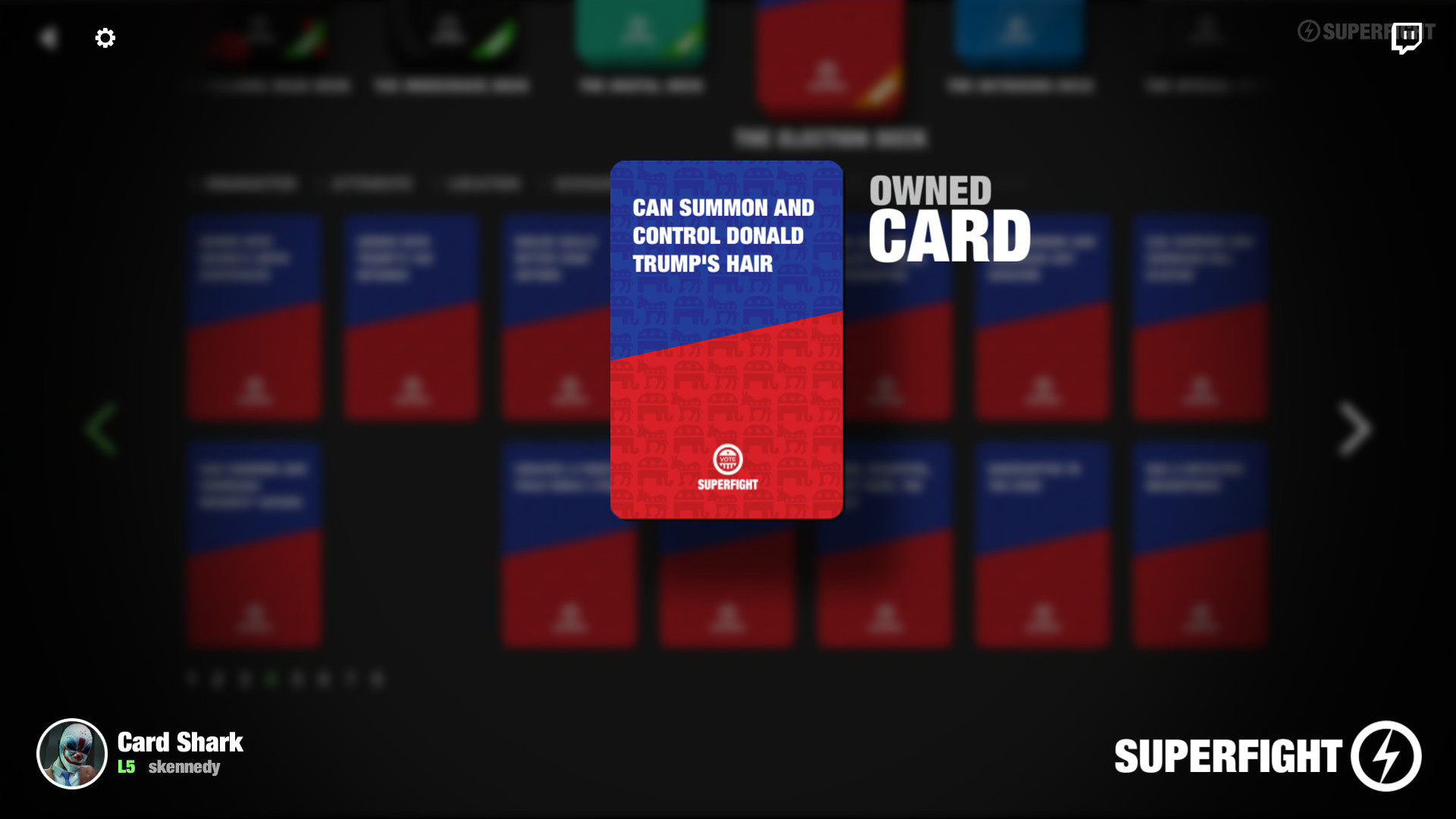 Once added to SUPERFIGHT, The Election Deck will be added to your Collection and can be selected when joining fights.