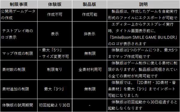 SMILE GAME BUILDER体験版は、製品版ご購入前に実際に機能を無料体験していただくことを目的としております。