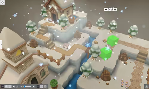 3Dモデリングの知識がなくても、ゲーム感覚で起伏に富んだ立体的なマップを作ることができます。作成した地形の上に完成した地形の上に建物や木々、噴水、橋などを設置していけば、冒険者の旅立ちにふさわしい立派な街の完成です!