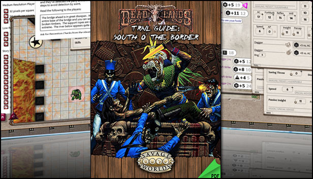 Trail Guide: South o' the Border, by Matt Cutter, is a supplement for the award-winning Deadlands: Reloaded RPG. It offers you a closer look at the people, places, and-most importantly-things in the Mexico of the Weird West, including creatures, people, Savage Tales, and a mini-Plot Point Campaign.