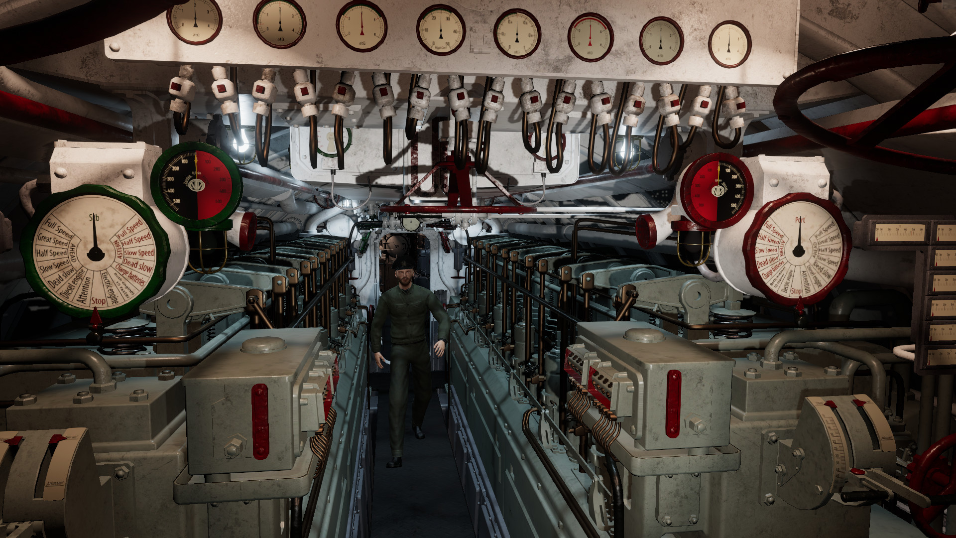 All stations and instruments in the U-boat are carefully modeled after original pictures and sources, and kept as realistic as possible without compromising usability. The game contains a fully operational torpedo data computer, manual navigation tools, and ship recognition manual.