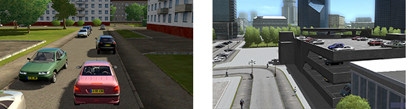 • Realistic traffic behavior which can violate traffic rules, park or leave parking lots.