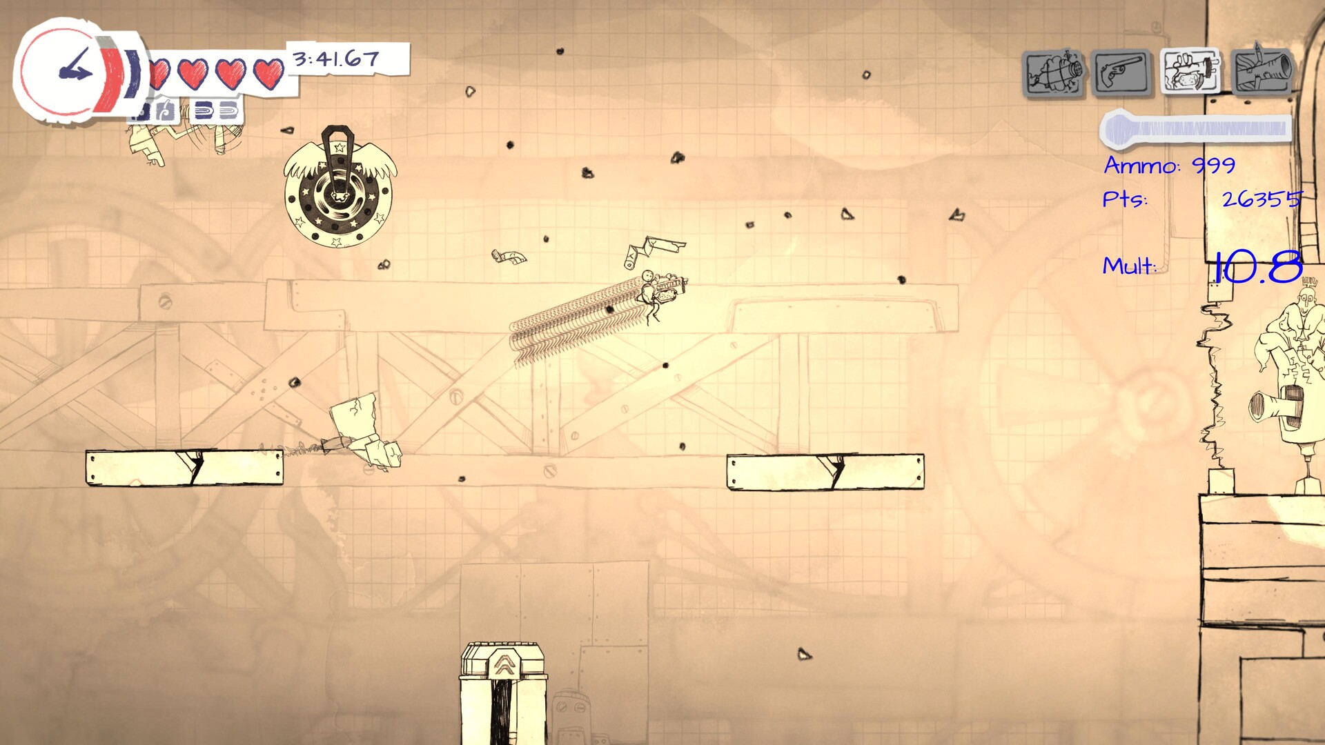 Combat and exploration are the heart of Pengame. Stickman is a natural jumper, with some less-than-natural time manipulation abilities. He also has access to various weapons, with unique strengths and weaknesses. Mastering his arsenal and making use of his time manipulation talents are crucial to prevail against overwhelming odds and traverse through the most treacherous areas of the notebook.