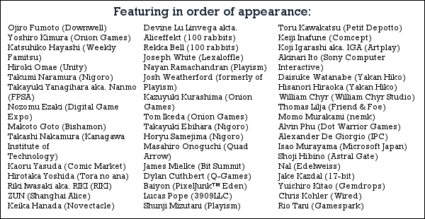 For the last several years, the Japanese game industry has begun to recognize the power of independent creators and the momentum of the fledgling scene, and in 2013, the Tokyo Game Show created a pavilion to feature indie creators for the first time in its history.