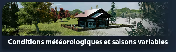 Affronte les conditions météorologiques diverses comme la sécheresse ou les pluies diluviennes, engrange tes récoltes avant les premières gelées et les premières neiges. Guette un arc-en-ciel lors d'une pluie légère et observe les ombres qui s'allongent , l'ensoleillement qui change et les couleurs en fonction de la saison en cours. À chaque instant, tu peux passer en mode photo pour faire de manifiques captures d'écran de ton exploitation baignée de douces couleurs automnales ou dans un décor sombre pendant une tempête avec des éclairs en arrière-plan.