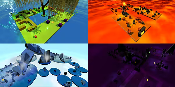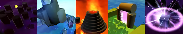 The dimensions are based on different aspects of the ancient 'elements'. Pura (latin for pure) is the vanilla, 'normal' dimension, with land and sea, fauna and flora. It is not too challenging, and acts as a tutorial world. Ignis (latin for fire) is the fire dimension, featuring lava traps, volcanoes and totems, all of which, are deadly. Glacium (derived from the word latin for ice) is the ice dimension, which includes rock falls, stalagmites and snow storms. The Quanta dimension (Quanta being plural for Quantum) is the dark dimension, where physics are twisted and mysterious forces dominate. This desolate dimension introduces quantum entanglement, unlock switches, and giant sentries.