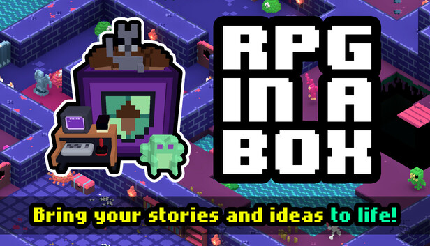 RPG in a Box vous permet de créer facilement des RPG et des jeux d'aventure en 3D avec un style à base de voxels ! Comme son nom l'indique, il rassemble « dans une boîte » tous les outils nécessaires pour changer vos idées en jeux. Le logiciel est conçu pour être accessible aux débutants : très ouvert, il ne demande aucune connaissance en programmation ni en modélisation, tout en offrant de vastes possibilités de personnalisation.