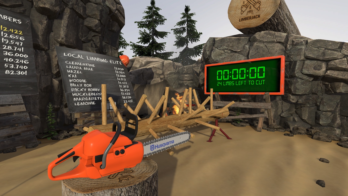Known to chainsaw-wielding loggers around the world as ‘limbing’, the art of stripping felled trees of their branches is exciting, but very dangerous. Welcome to Limberjack — a secluded training site where you can pursue your dream of breaking into the World Logging Championships to become the undisputed greatest limber alive.