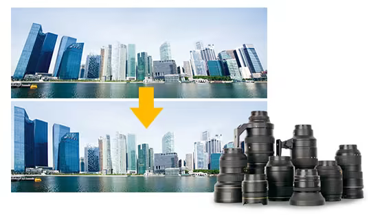 Mit der Unterstützung von über 100 Objektiv-Profilen korrigieren Sie Probleme wie Konvexverzerrungen, Vignettierungen und chromatische
