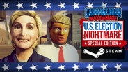 The original PC release of Carmageddon: Max Damage launched with a “US Election Special” mode, taking inspiration from topical current events - as two of the least-liked meat sacks on the planet slugged it out to become the Most Powerful Person On Earth. This Special Edition has these game modes still in place, because it remains just as funny now as it was then to show the President and the failed candidate what you think… By MOWING THEM DOWN IN A VIDEOGAME! Not just once, but over and over again... Impale a horrified Hillary on the end of your mighty rod! Repulsificate demented Donalds straight to frigging CHINA! It’s hours of FUN for the whole FAMILY!