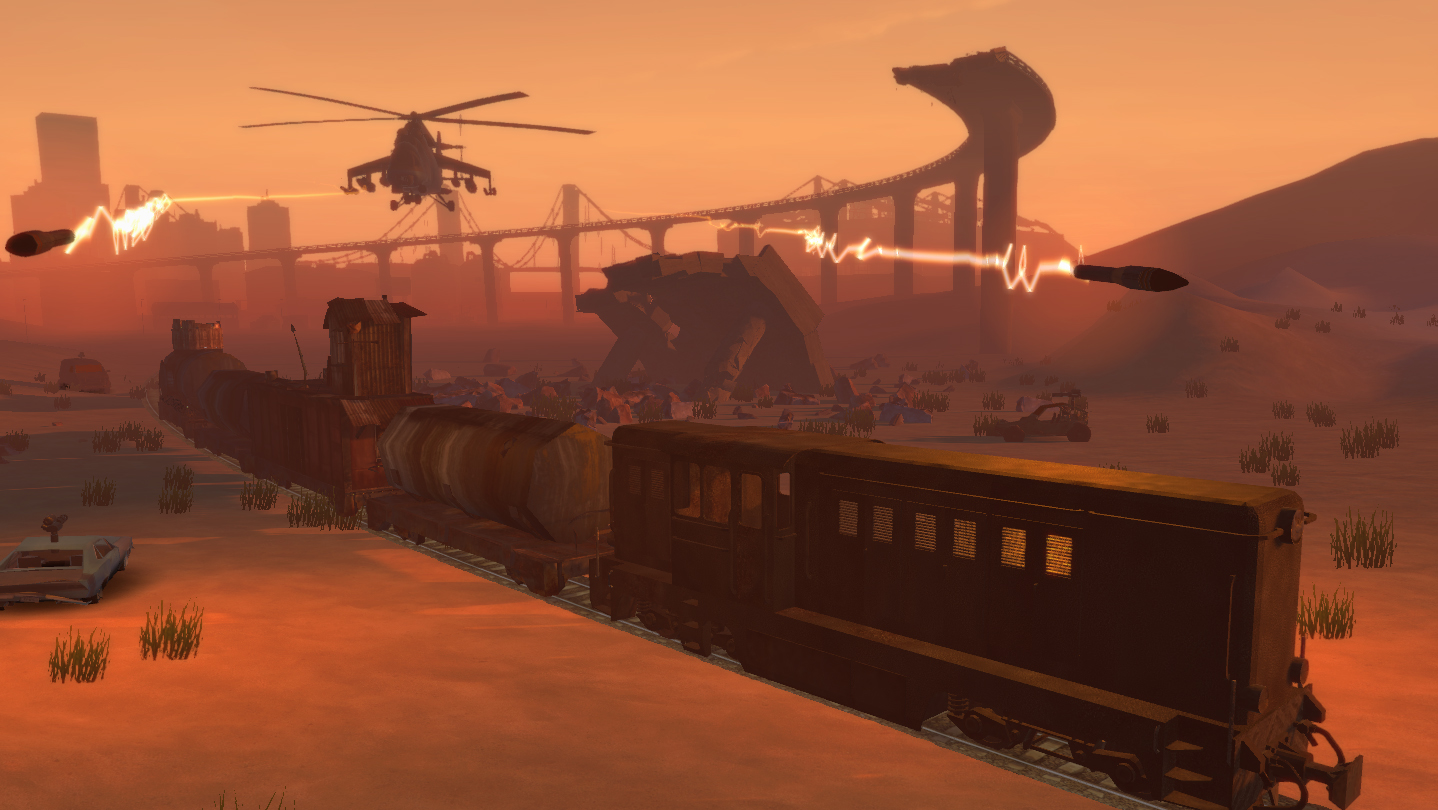 A battle rages over the last of the worlds water. Your transport train is the only hope for thousands. Protect the train - Humanity's survival depends on it.