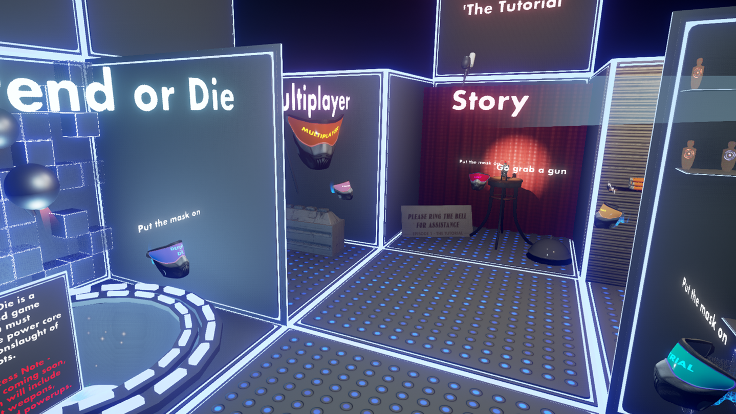 Finally, "The Trial" a challenging game mode in which the player must stock up on supplies first. Then at random modular maps are selected filled with turrets and obstacles for the player to traverse. This is very much an experimental game mode which will be updated and iterated upon very soon.