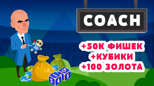Після придбання даного контенту ви отримуєте в свою колекцію персонажа "Тренер", "Кубики Тренера", а також 100 золотих і 50.000 фішок.