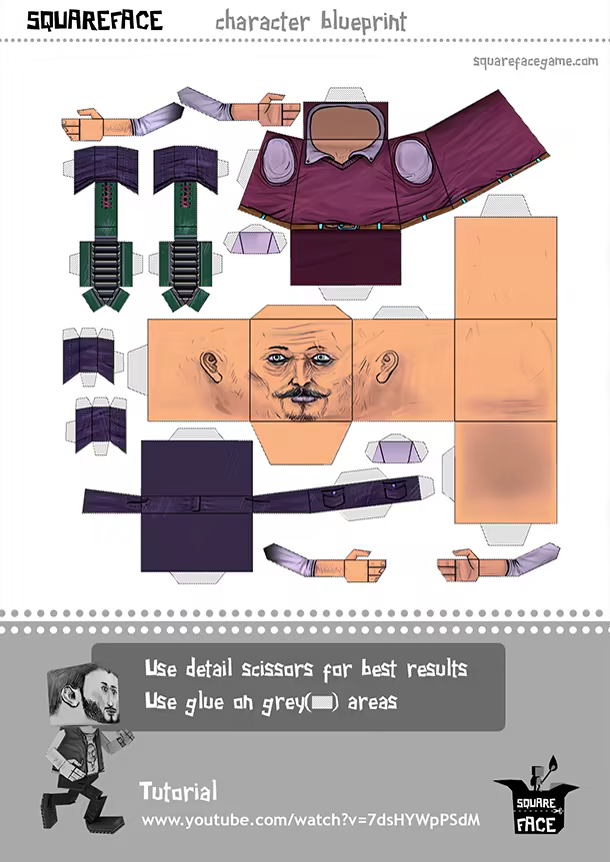 Paper and cardboard can be surprising and they have never offered so much choice until now via the customization options. The player’s character is adjustable to any preference. It takes you back to your early childhood. One can choose the gender, the weapons, the clothes for every part of its body, most of them independent of the previous gender selection, and various backpacks. One can dress or equip to be able to, technically, go to any world event, festival or war. All the costumes will be available as unlocks, giving the user the extra choice to actually print their own blueprints and craft them manually. The real life models can then be used as tokens for the Squareface: Board Game.