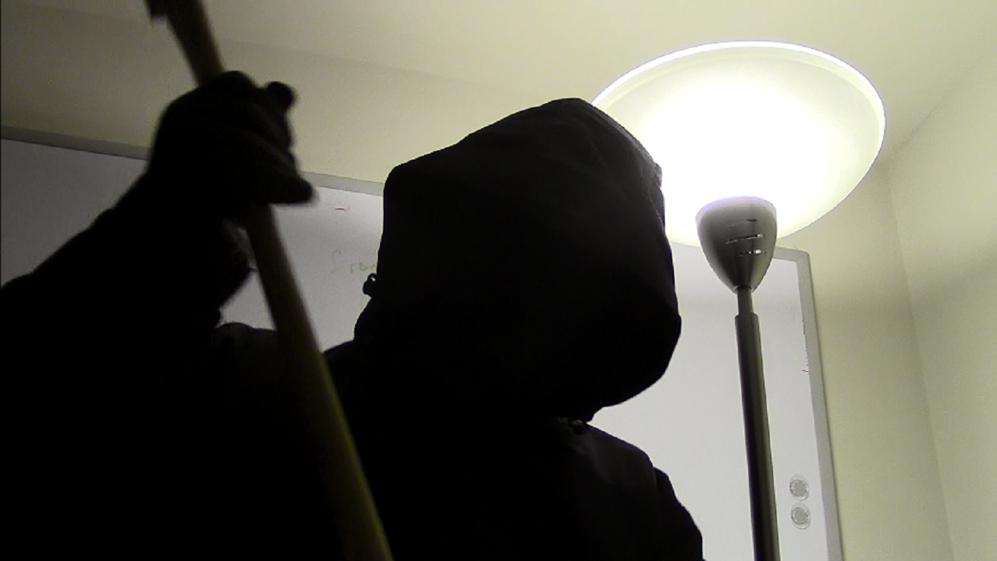 Intruders have entered your home and who knows what they'll do once they find you. Luckily you have an excessive number of cameras installed throughout the house which will enable you to spot the intruders approaching your position. What's more, these intruders are afraid of light and you just bought a brand new flashlight! All you have to do now is watch the cameras, shine the light when they approach and hold out until morning.