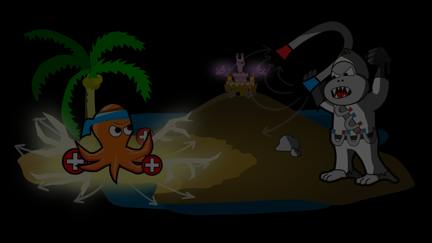The Electric Shocktopus has a trick up one of his eight sleeves: he can change his electric charge at will. Zoom across electric fields, twist through magnets, and use conductors to bend the world to your will. Never has the Right Hand Rule involved so many tentacles!
