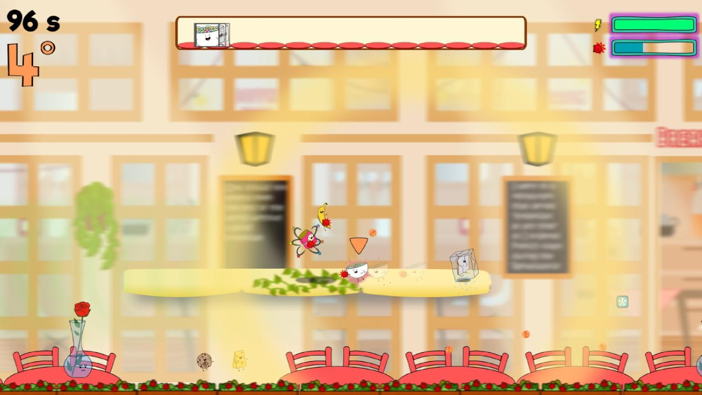 And if playing in local multiplayer with up to 3 friends isn’t enough, you can also play online with up to 7 unknown foods over the Internet. Or even better: why not mix it up and crush both your friend sitting on your couch and an unknown player from the Internet, all at the same time? In Breaking Fast, there are no limits: a good breakfast should be shared with as many people as possible!