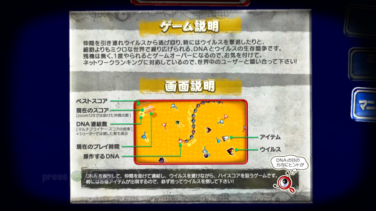 DNAとアイテムが増量!ウイルスは激減!のカオスな世界を楽しめます。