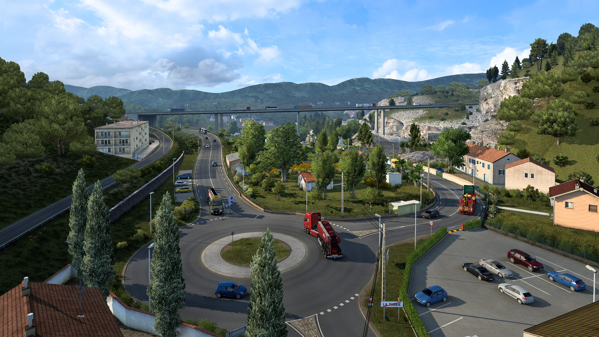 Discover famous landmarks, deliver to expansive industrial areas, navigate complex intersections and interchanges, enjoy visually unique roundabouts inspired by real locations. Transport a variety of new cargo to service new local French companies as well as connecting the region to the rest of Europe.