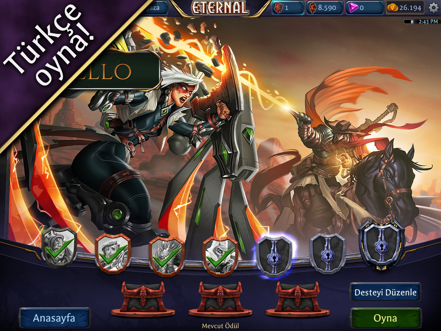 Sınırsız seçenekleri ve inanılmaz eğlencesi ile yeni strateji kart oyunu Eternal'da altı patlarlar ve büyüler çarpışıyor. Eternal AAA hızını ve cilasını, bir derin strateji kart oyununun sonsuz olasılıkları ile birleştiriyor. Tek sınır yaratıcılığın.