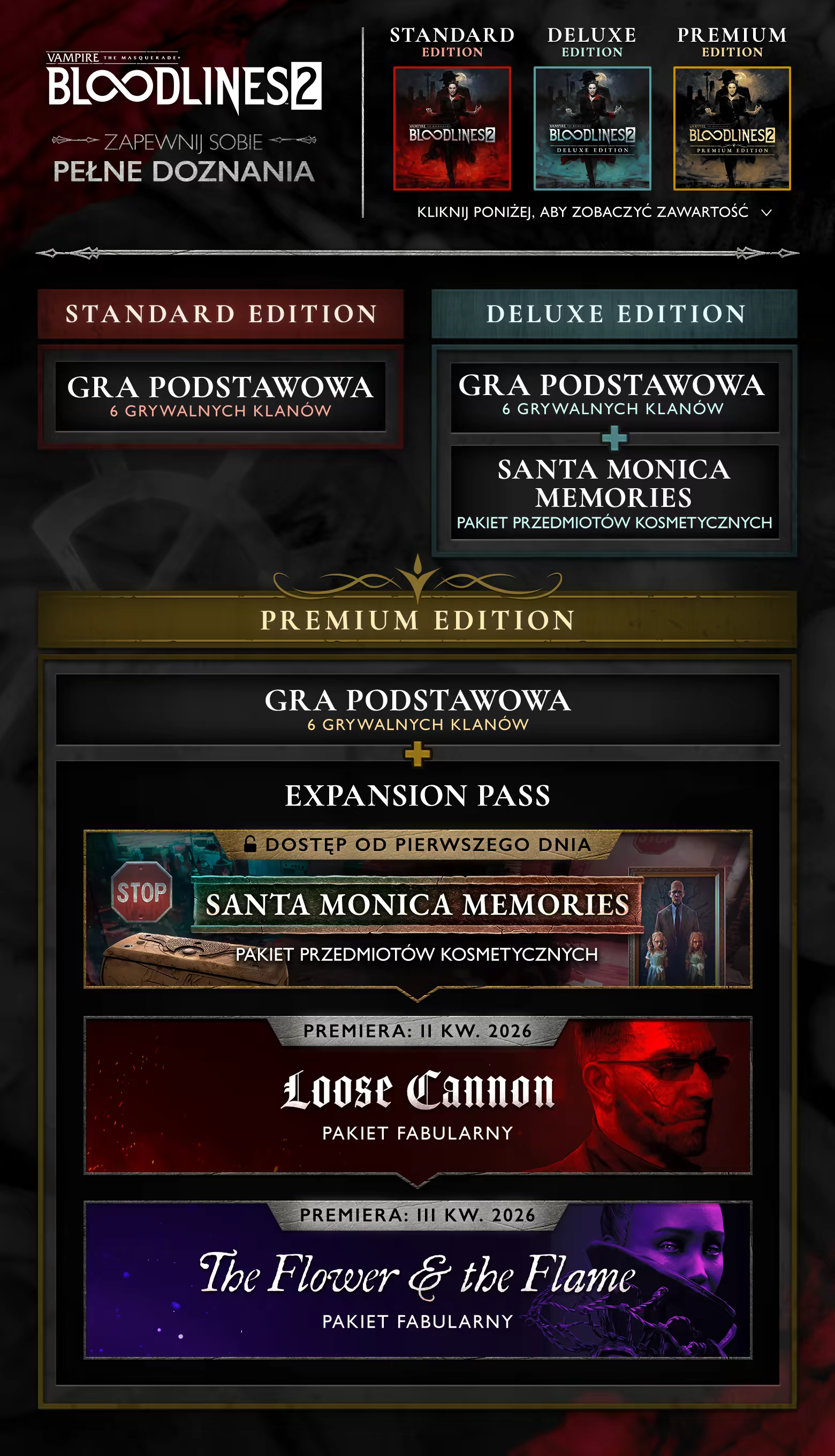 Wkrocz do Świata Mroku i zyskaj wysoką pozycję w wampirzej społeczności lub stań do niej w opozycji. Odkryj Seattle: miasto pełne intrygujących i groźnych postaci oraz frakcji, a także śmiertelników narażonych na działanie mocy, o których nie mają pojęcia. W tej kontynuacji kultowego klasyka twoje wybory, spiski i intrygi zadecydują o równowadze sił i o tym, co stanie się z miastem i jego mieszkańcami.