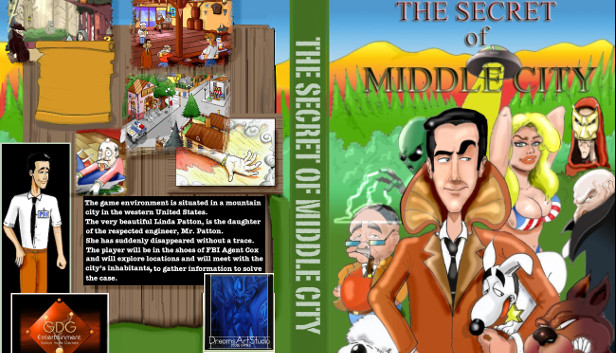 Inspired by classics such as "Monkey Island" and "Broken Sword", intriguing and seducing like a "Twin Peaks" parody, "The Secret of Middle City" is an adventure that takes place in a typical north-american mountain town and that sees the protagonist, the goofy and clumsy Federal Agent Cox, strive among mysteries and false leads in order to solve a weird case of presumed homicide.