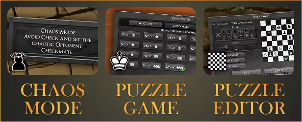 • Chess Puzzle Editor for re-enacting the brilliant moves of famous chess masters or creating your very own challenging setups.