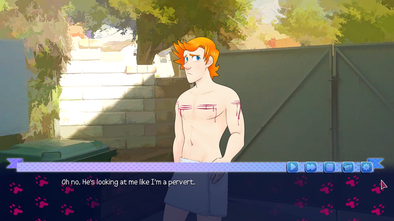 Evil forces have turned these five hunky beefcake time-displaced boys into animals! You've got to help cure them and maybe even fall in love! Mystery! Intrigue! Romance! No furries, despite the title! A dating sim by Wilson Taylor, Maia Gross and Travis Tohill.