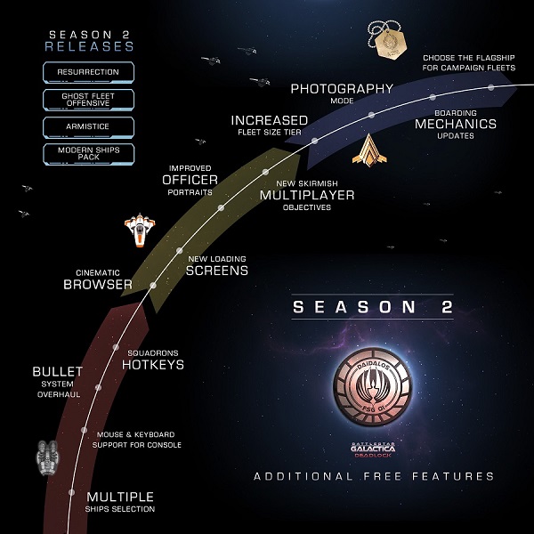 Since its release Battlestar Galactica Deadlock has been constantly improved and expanded through DLCs and free updates alike. The developers have added plenty new features and content to the original game. The release of Sin and Sacrifice marked the conclusion of Season One, and we decided to show and recap all that had been added until that point. Click on the link below to have a look!