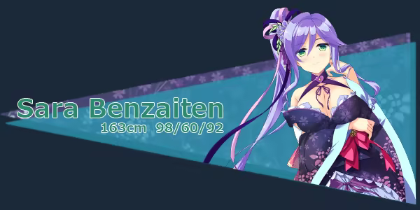 Benzaiten's blessings are plentiful; she is the goddess of music, good fortune, the arts, victory, and even water. She holds the center position in L☆SEVEN.