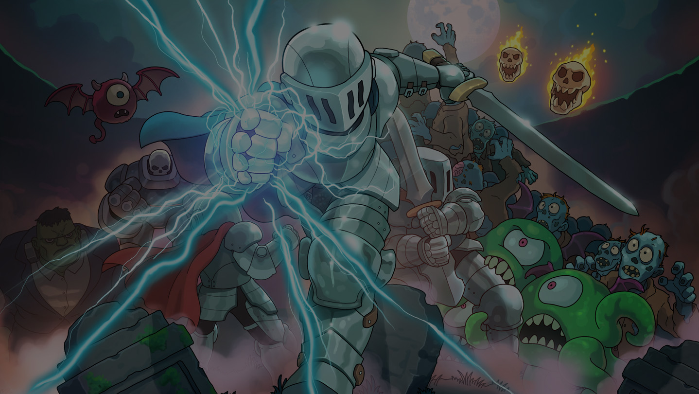 IRON CRYPTICLE is an arcade twin-stick dungeon shooter with RPG elements for 1 to 4 players LOCAL CO-OP! A mysterious, malevolent force has abducted Cryptonia’s princess – along with the king’s royal golden treasures (shaped curiously like large foodstuffs...). Kingsguard to the rescue!